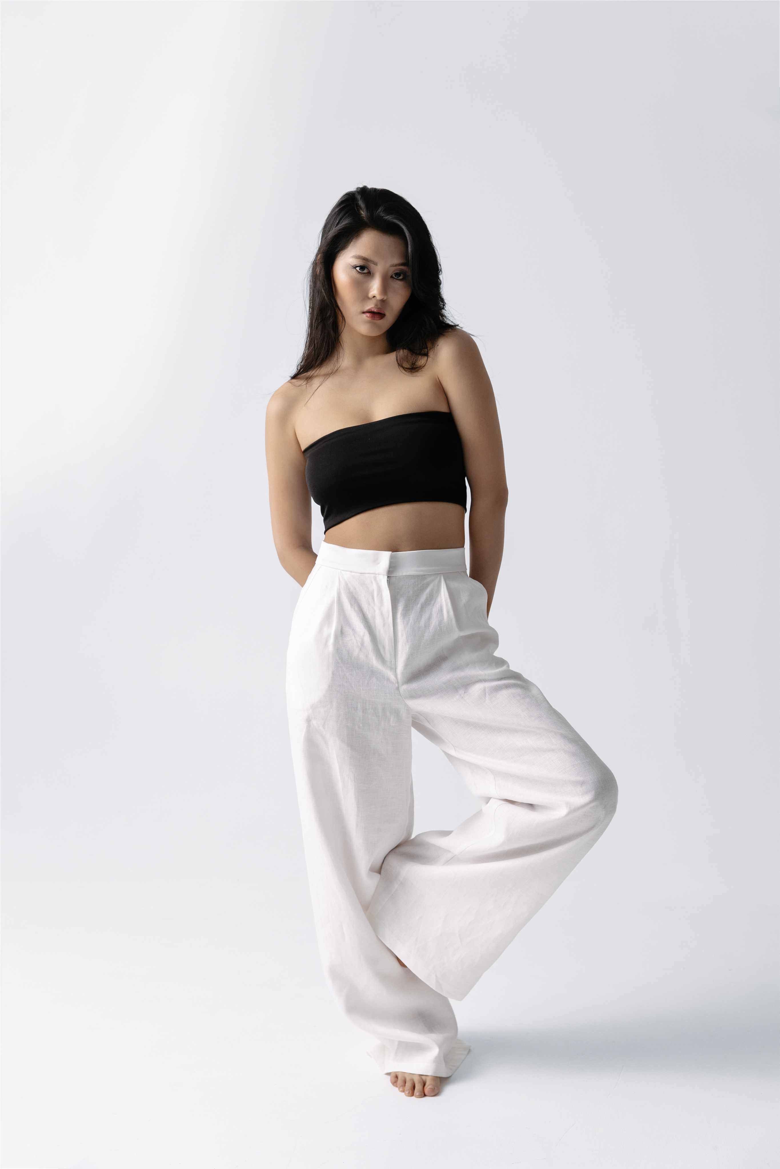 Брюки из 100% льна в молочном цвете с вставками из атласа, идеальный вариант для жаркого лета и дополнение к образу в деловом стиле, станут отличным выбором для прогулок по городу и встреч с друзьями. Благодаря качественным материалам брюки обеспечивают комфорт при носке даже в самые знойные дни. Брюки имеют удобную посадку и приятны телу благодаря использованию натуральных материалов. Они легко сочетаются с различными верхами, позволяя создавать разнообразные образы для любых случаев.