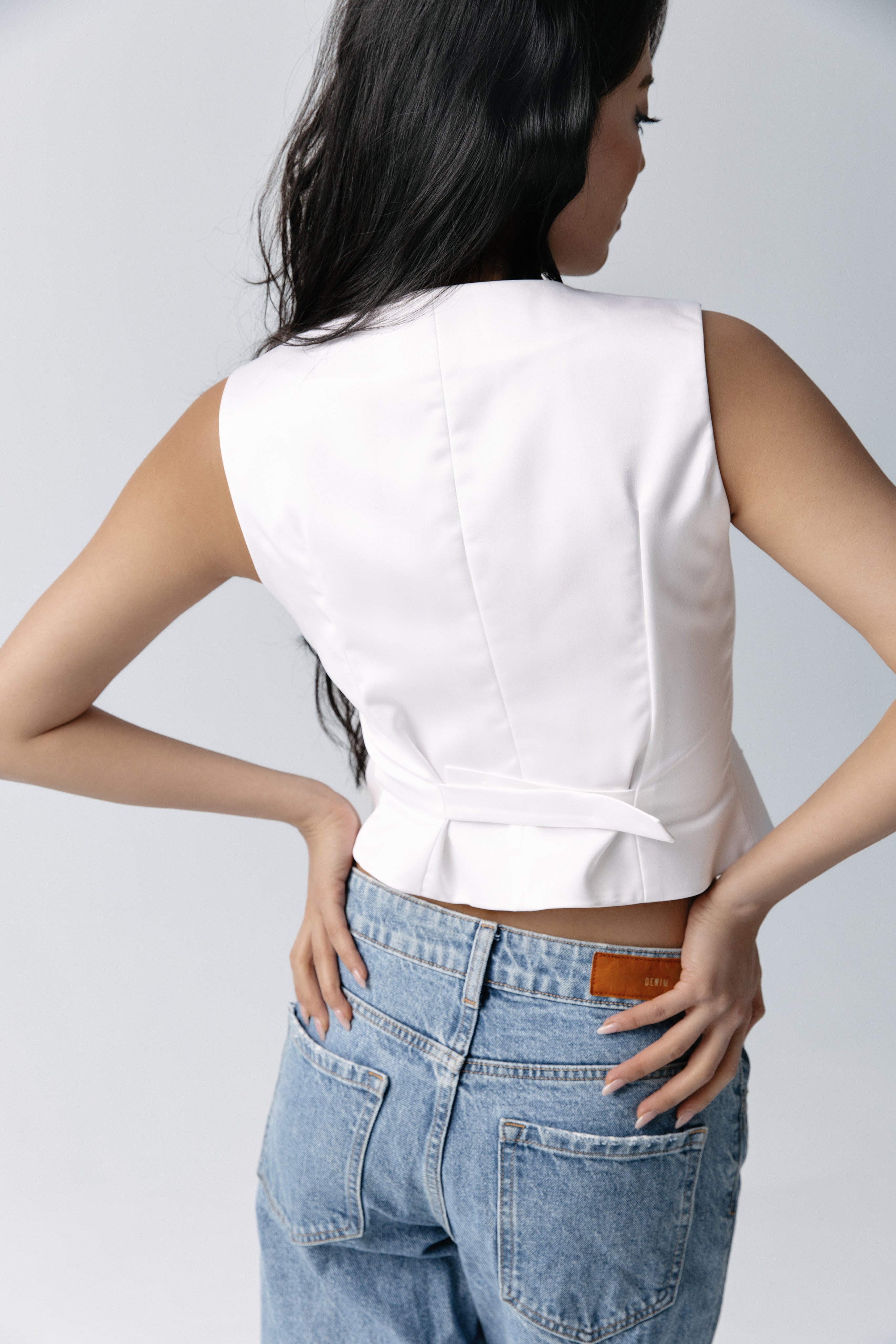Этот женственный жилет станет прекрасным дополнением к вашему образу! Изготовленный из качественного атласа, он обеспечит вам комфорт и элегантность. Молочный цвет придаст свежести и подчеркнет вашу индивидуальность. Не упустите возможность добавить эту стильную деталь в свой гардероб!